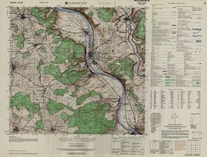 Hier finden Sie ein Meßtischblätter 1:25.000, von Deutschland, aus der Zeit der 1930er Jahre. Diese Karte wurde von Amerikanern damals bei Eisenschmidt gekauft und wurde in den USA für das amerikanische, später britische und französische Militär, bearbeitet. Überarbeitet in Form von Färbungen und Markierungen wurden diese Karten bis in die 50er Jahre.