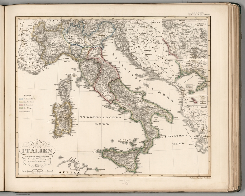 Italien in 4 Blättern, Blatt 2 (Adria. Nebenkarte: Rom) – Stielers Weltatlas von 1891