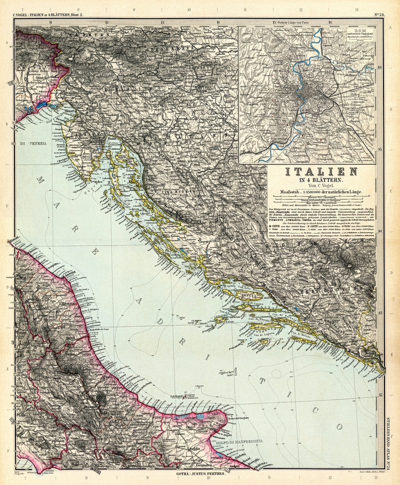 Italien in 4 Blättern, Blatt 4 (Kampanien, Apulien, Kalabrien, Sizilien, Malta) – Stielers Weltatlas von 1891
