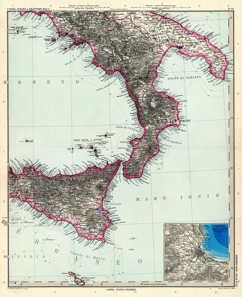 Italien. Übersicht – Stielers Weltatlas von 1881 – Karte 30)