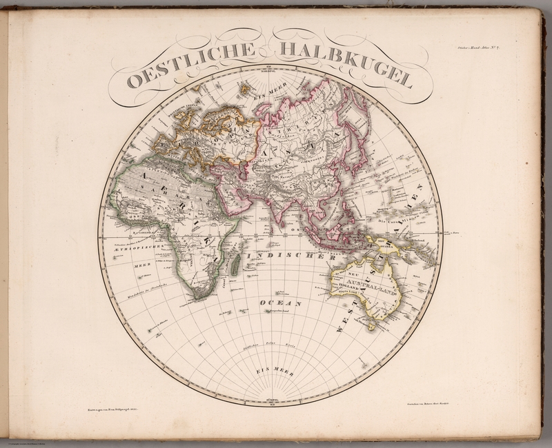 Östliche und westliche Halbkugel. Theil von Australien – Stielers Weltatlas von 1860 (Karte 3)