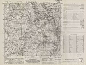 Hier finden Sie ein Meßtischblätter 1:25.000, von Deutschland, aus der Zeit der 1930er Jahre. Diese Karte wurde von Amerikanern damals bei Eisenschmidt gekauft und wurde in den USA für das amerikanische, später britische und französische Militär, bearbeitet. Überarbeitet in Form von Färbungen und Markierungen wurden diese Karten bis in die 50er Jahre.