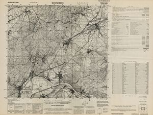 Hier finden Sie ein Meßtischblätter 1:25.000, von Deutschland, aus der Zeit der 1930er Jahre. Diese Karte wurde von Amerikanern damals bei Eisenschmidt gekauft und wurde in den USA für das amerikanische, später britische und französische Militär, bearbeitet. Überarbeitet in Form von Färbungen und Markierungen wurden diese Karten bis in die 50er Jahre.