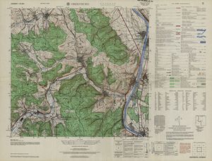 Hier finden Sie ein Meßtischblätter 1:25.000, von Deutschland, aus der Zeit der 1930er Jahre. Diese Karte wurde von Amerikanern damals bei Eisenschmidt gekauft und wurde in den USA für das amerikanische, später britische und französische Militär, bearbeitet. Überarbeitet in Form von Färbungen und Markierungen wurden diese Karten bis in die 50er Jahre.
