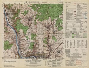 Hier finden Sie ein Meßtischblätter 1:25.000, von Deutschland, aus der Zeit der 1930er Jahre. Diese Karte wurde von Amerikanern damals bei Eisenschmidt gekauft und wurde in den USA für das amerikanische, später britische und französische Militär, bearbeitet. Überarbeitet in Form von Färbungen und Markierungen wurden diese Karten bis in die 50er Jahre.