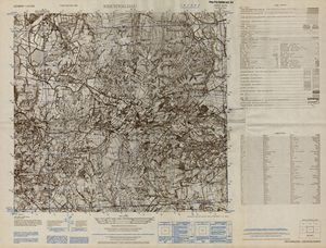 Hier finden Sie ein Meßtischblätter 1:25.000, von Deutschland, aus der Zeit der 1930er Jahre. Diese Karte wurde von Amerikanern damals bei Eisenschmidt gekauft und wurde in den USA für das amerikanische, später britische und französische Militär, bearbeitet. Überarbeitet in Form von Färbungen und Markierungen wurden diese Karten bis in die 50er Jahre.