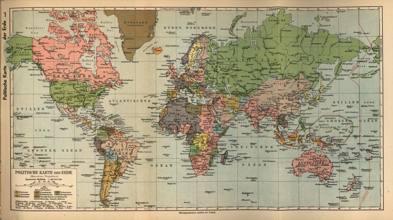Politische Karte der Erde (Meyers Volksatlas – Seite 1 / 1932)