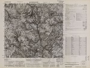 Hier finden Sie ein Meßtischblätter 1:25.000, von Deutschland, aus der Zeit der 1930er Jahre. Diese Karte wurde von Amerikanern damals bei Eisenschmidt gekauft und wurde in den USA für das amerikanische, später britische und französische Militär, bearbeitet. Überarbeitet in Form von Färbungen und Markierungen wurden diese Karten bis in die 50er Jahre.