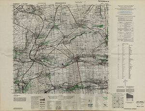 Hier finden Sie ein Meßtischblätter 1:25.000, von Deutschland, aus der Zeit der 1930er Jahre. Diese Karte wurde von Amerikanern damals bei Eisenschmidt gekauft und wurde in den USA für das amerikanische, später britische und französische Militär, bearbeitet. Überarbeitet in Form von Färbungen und Markierungen wurden diese Karten bis in die 50er Jahre.