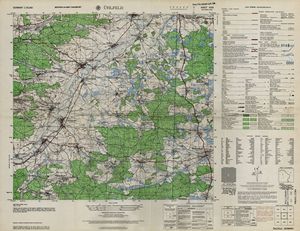 Hier finden Sie ein Meßtischblätter 1:25.000, von Deutschland, aus der Zeit der 1930er Jahre. Diese Karte wurde von Amerikanern damals bei Eisenschmidt gekauft und wurde in den USA für das amerikanische, später britische und französische Militär, bearbeitet. Überarbeitet in Form von Färbungen und Markierungen wurden diese Karten bis in die 50er Jahre.