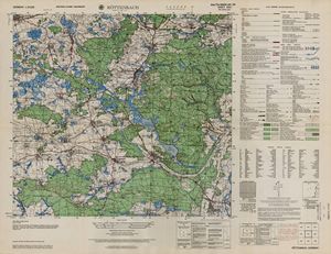 Hier finden Sie ein Meßtischblätter 1:25.000, von Deutschland, aus der Zeit der 1930er Jahre. Diese Karte wurde von Amerikanern damals bei Eisenschmidt gekauft und wurde in den USA für das amerikanische, später britische und französische Militär, bearbeitet. Überarbeitet in Form von Färbungen und Markierungen wurden diese Karten bis in die 50er Jahre.