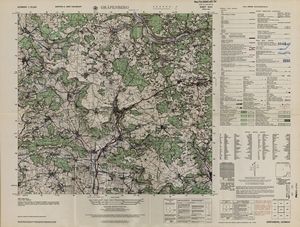 Hier finden Sie ein Meßtischblätter 1:25.000, von Deutschland, aus der Zeit der 1930er Jahre. Diese Karte wurde von Amerikanern damals bei Eisenschmidt gekauft und wurde in den USA für das amerikanische, später britische und französische Militär, bearbeitet. Überarbeitet in Form von Färbungen und Markierungen wurden diese Karten bis in die 50er Jahre.