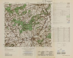 Hier finden Sie ein Meßtischblätter 1:25.000, von Deutschland, aus der Zeit der 1930er Jahre. Diese Karte wurde von Amerikanern damals bei Eisenschmidt gekauft und wurde in den USA für das amerikanische, später britische und französische Militär, bearbeitet. Überarbeitet in Form von Färbungen und Markierungen wurden diese Karten bis in die 50er Jahre.