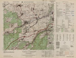 Hier finden Sie ein Meßtischblätter 1:25.000, von Deutschland, aus der Zeit der 1930er Jahre. Diese Karte wurde von Amerikanern damals bei Eisenschmidt gekauft und wurde in den USA für das amerikanische, später britische und französische Militär, bearbeitet. Überarbeitet in Form von Färbungen und Markierungen wurden diese Karten bis in die 50er Jahre.