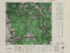 Hier finden Sie ein Meßtischblätter 1:25.000, von Deutschland, aus der Zeit der 1930er Jahre. Diese Karte wurde von Amerikanern damals bei Eisenschmidt gekauft und wurde in den USA für das amerikanische, später britische und französische Militär, bearbeitet. Überarbeitet in Form von Färbungen und Markierungen wurden diese Karten bis in die 50er Jahre.