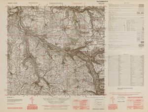 Hier finden Sie ein Meßtischblätter 1:25.000, von Deutschland, aus der Zeit der 1930er Jahre. Diese Karte wurde von Amerikanern damals bei Eisenschmidt gekauft und wurde in den USA für das amerikanische, später britische und französische Militär, bearbeitet. Überarbeitet in Form von Färbungen und Markierungen wurden diese Karten bis in die 50er Jahre.