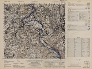 Hier finden Sie ein Meßtischblätter 1:25.000, von Deutschland, aus der Zeit der 1930er Jahre. Diese Karte wurde von Amerikanern damals bei Eisenschmidt gekauft und wurde in den USA für das amerikanische, später britische und französische Militär, bearbeitet. Überarbeitet in Form von Färbungen und Markierungen wurden diese Karten bis in die 50er Jahre.