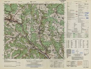 Hier finden Sie ein Meßtischblätter 1:25.000, von Deutschland, aus der Zeit der 1930er Jahre. Diese Karte wurde von Amerikanern damals bei Eisenschmidt gekauft und wurde in den USA für das amerikanische, später britische und französische Militär, bearbeitet. Überarbeitet in Form von Färbungen und Markierungen wurden diese Karten bis in die 50er Jahre.