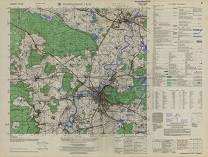 Hier finden Sie ein Meßtischblätter 1:25.000, von Deutschland, aus der Zeit der 1930er Jahre. Diese Karte wurde von Amerikanern damals bei Eisenschmidt gekauft und wurde in den USA für das amerikanische, später britische und französische Militär, bearbeitet. Überarbeitet in Form von Färbungen und Markierungen wurden diese Karten bis in die 50er Jahre.