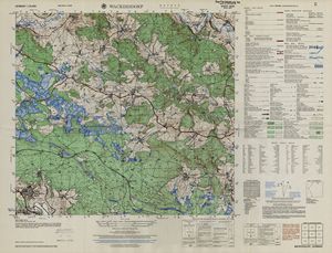 Hier finden Sie ein Meßtischblätter 1:25.000, von Deutschland, aus der Zeit der 1930er Jahre. Diese Karte wurde von Amerikanern damals bei Eisenschmidt gekauft und wurde in den USA für das amerikanische, später britische und französische Militär, bearbeitet. Überarbeitet in Form von Färbungen und Markierungen wurden diese Karten bis in die 50er Jahre.