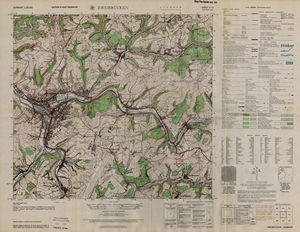 Hier finden Sie ein Meßtischblätter 1:25.000, von Deutschland, aus der Zeit der 1930er Jahre. Diese Karte wurde von Amerikanern damals bei Eisenschmidt gekauft und wurde in den USA für das amerikanische, später britische und französische Militär, bearbeitet. Überarbeitet in Form von Färbungen und Markierungen wurden diese Karten bis in die 50er Jahre.
