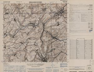 Hier finden Sie ein Meßtischblätter 1:25.000, von Deutschland, aus der Zeit der 1930er Jahre. Diese Karte wurde von Amerikanern damals bei Eisenschmidt gekauft und wurde in den USA für das amerikanische, später britische und französische Militär, bearbeitet. Überarbeitet in Form von Färbungen und Markierungen wurden diese Karten bis in die 50er Jahre.