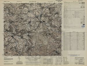 Hier finden Sie ein Meßtischblätter 1:25.000, von Deutschland, aus der Zeit der 1930er Jahre. Diese Karte wurde von Amerikanern damals bei Eisenschmidt gekauft und wurde in den USA für das amerikanische, später britische und französische Militär, bearbeitet. Überarbeitet in Form von Färbungen und Markierungen wurden diese Karten bis in die 50er Jahre.