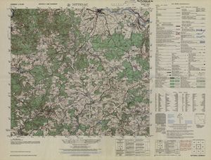 Hier finden Sie ein Meßtischblätter 1:25.000, von Deutschland, aus der Zeit der 1930er Jahre. Diese Karte wurde von Amerikanern damals bei Eisenschmidt gekauft und wurde in den USA für das amerikanische, später britische und französische Militär, bearbeitet. Überarbeitet in Form von Färbungen und Markierungen wurden diese Karten bis in die 50er Jahre.
