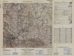 Hier finden Sie ein Meßtischblätter 1:25.000, von Deutschland, aus der Zeit der 1930er Jahre. Diese Karte wurde von Amerikanern damals bei Eisenschmidt gekauft und wurde in den USA für das amerikanische, später britische und französische Militär, bearbeitet. Überarbeitet in Form von Färbungen und Markierungen wurden diese Karten bis in die 50er Jahre.