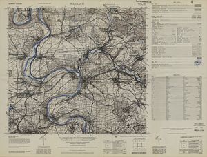 Hier finden Sie ein Meßtischblätter 1:25.000, von Deutschland, aus der Zeit der 1930er Jahre. Diese Karte wurde von Amerikanern damals bei Eisenschmidt gekauft und wurde in den USA für das amerikanische, später britische und französische Militär, bearbeitet. Überarbeitet in Form von Färbungen und Markierungen wurden diese Karten bis in die 50er Jahre.