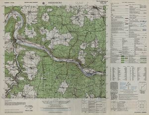 Hier finden Sie ein Meßtischblätter 1:25.000, von Deutschland, aus der Zeit der 1930er Jahre. Diese Karte wurde von Amerikanern damals bei Eisenschmidt gekauft und wurde in den USA für das amerikanische, später britische und französische Militär, bearbeitet. Überarbeitet in Form von Färbungen und Markierungen wurden diese Karten bis in die 50er Jahre.