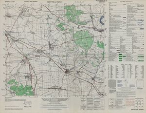 Hier finden Sie ein Meßtischblätter 1:25.000, von Deutschland, aus der Zeit der 1930er Jahre. Diese Karte wurde von Amerikanern damals bei Eisenschmidt gekauft und wurde in den USA für das amerikanische, später britische und französische Militär, bearbeitet. Überarbeitet in Form von Färbungen und Markierungen wurden diese Karten bis in die 50er Jahre.