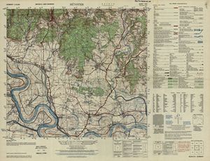 Hier finden Sie ein Meßtischblätter 1:25.000, von Deutschland, aus der Zeit der 1930er Jahre. Diese Karte wurde von Amerikanern damals bei Eisenschmidt gekauft und wurde in den USA für das amerikanische, später britische und französische Militär, bearbeitet. Überarbeitet in Form von Färbungen und Markierungen wurden diese Karten bis in die 50er Jahre.