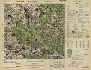 Hier finden Sie ein Meßtischblätter 1:25.000, von Deutschland, aus der Zeit der 1930er Jahre. Diese Karte wurde von Amerikanern damals bei Eisenschmidt gekauft und wurde in den USA für das amerikanische, später britische und französische Militär, bearbeitet. Überarbeitet in Form von Färbungen und Markierungen wurden diese Karten bis in die 50er Jahre.