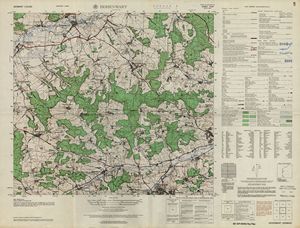 Hier finden Sie ein Meßtischblätter 1:25.000, von Deutschland, aus der Zeit der 1930er Jahre. Diese Karte wurde von Amerikanern damals bei Eisenschmidt gekauft und wurde in den USA für das amerikanische, später britische und französische Militär, bearbeitet. Überarbeitet in Form von Färbungen und Markierungen wurden diese Karten bis in die 50er Jahre.