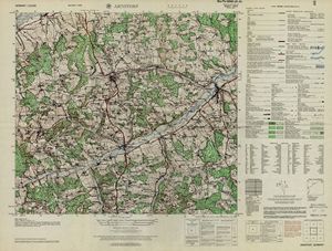 Hier finden Sie ein Meßtischblätter 1:25.000, von Deutschland, aus der Zeit der 1930er Jahre. Diese Karte wurde von Amerikanern damals bei Eisenschmidt gekauft und wurde in den USA für das amerikanische, später britische und französische Militär, bearbeitet. Überarbeitet in Form von Färbungen und Markierungen wurden diese Karten bis in die 50er Jahre.