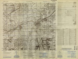Hier finden Sie ein Meßtischblätter 1:25.000, von Deutschland, aus der Zeit der 1930er Jahre. Diese Karte wurde von Amerikanern damals bei Eisenschmidt gekauft und wurde in den USA für das amerikanische, später britische und französische Militär, bearbeitet. Überarbeitet in Form von Färbungen und Markierungen wurden diese Karten bis in die 50er Jahre.