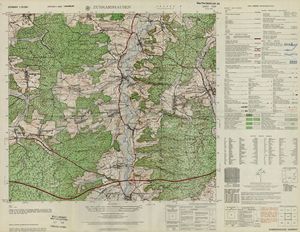 Hier finden Sie ein Meßtischblätter 1:25.000, von Deutschland, aus der Zeit der 1930er Jahre. Diese Karte wurde von Amerikanern damals bei Eisenschmidt gekauft und wurde in den USA für das amerikanische, später britische und französische Militär, bearbeitet. Überarbeitet in Form von Färbungen und Markierungen wurden diese Karten bis in die 50er Jahre.