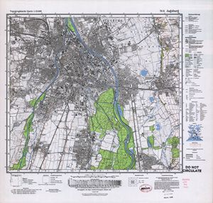 Hier finden Sie ein Meßtischblätter 1:25.000, von Deutschland, aus der Zeit der 1930er Jahre. Diese Karte wurde von Amerikanern damals bei Eisenschmidt gekauft und wurde in den USA für das amerikanische, später britische und französische Militär, bearbeitet. Überarbeitet in Form von Färbungen und Markierungen wurden diese Karten bis in die 50er Jahre.