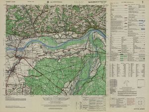 Hier finden Sie ein Meßtischblätter 1:25.000, von Deutschland, aus der Zeit der 1930er Jahre. Diese Karte wurde von Amerikanern damals bei Eisenschmidt gekauft und wurde in den USA für das amerikanische, später britische und französische Militär, bearbeitet. Überarbeitet in Form von Färbungen und Markierungen wurden diese Karten bis in die 50er Jahre.