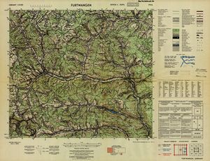 Hier finden Sie ein Meßtischblätter 1:25.000, von Deutschland, aus der Zeit der 1930er Jahre. Diese Karte wurde von Amerikanern damals bei Eisenschmidt gekauft und wurde in den USA für das amerikanische, später britische und französische Militär, bearbeitet. Überarbeitet in Form von Färbungen und Markierungen wurden diese Karten bis in die 50er Jahre.