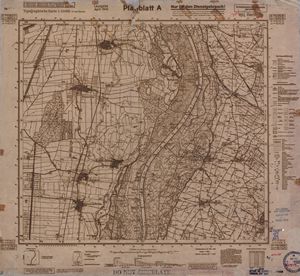 Hier finden Sie ein Meßtischblätter 1:25.000, von Deutschland, aus der Zeit der 1930er Jahre. Diese Karte wurde von Amerikanern damals bei Eisenschmidt gekauft und wurde in den USA für das amerikanische, später britische und französische Militär, bearbeitet. Überarbeitet in Form von Färbungen und Markierungen wurden diese Karten bis in die 50er Jahre.