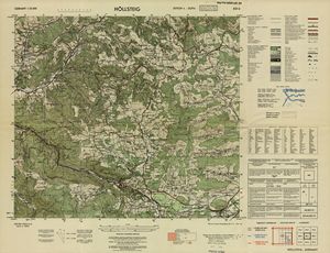Hier finden Sie ein Meßtischblätter 1:25.000, von Deutschland, aus der Zeit der 1930er Jahre. Diese Karte wurde von Amerikanern damals bei Eisenschmidt gekauft und wurde in den USA für das amerikanische, später britische und französische Militär, bearbeitet. Überarbeitet in Form von Färbungen und Markierungen wurden diese Karten bis in die 50er Jahre.