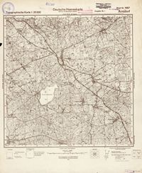 Unsere große Sammlung von Meßtischblättern, der topographischen Landkarte im Maßstab 1:25.000, ist sehr vielseitig. Am Kartenrand sind meistens Hinweise über die Herkunft. Auch das Herstellungsdatum meistens auch mit Korrekturen ist zu finden. Die meisten Karten in der Sammlung sind aus dem 20. Jahrhundert bis 1945.